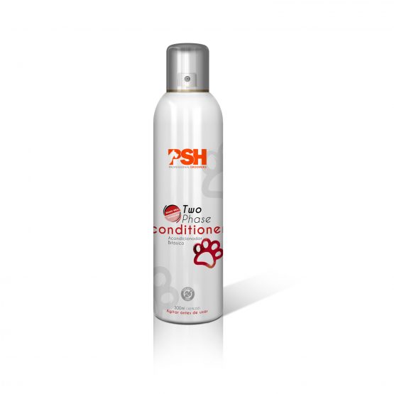Presentación: Aerosol sin gas de 300ml. El Acondicionador Instantáneo Bifásico PSH Antinudos actúa sobre el pelo húmedo o seco, deshidratado o sensibilizado de su mascota. Su composición en dos fases actúa sobre la cutícula y sobre el córtex del pelo SIMULTANEAMENTE. Puede utilizarse en todas las razas, pero está especialmente indicado en razas de manto medio, largo o denso, de frecuente cepillado. Puede ser utilizado en pelo húmedo (después del lavado) o seco, entre lavados. Facilita el cepillado del perro debido a su facilidad extrema para la eliminación de nudos y enredos. Nutre e hidrata, aportando protección. El pelo adquiere el brillo, soltura y suavidad propio de los mantos sanos. Los resultados son inmediatos desde la primera aplicación.