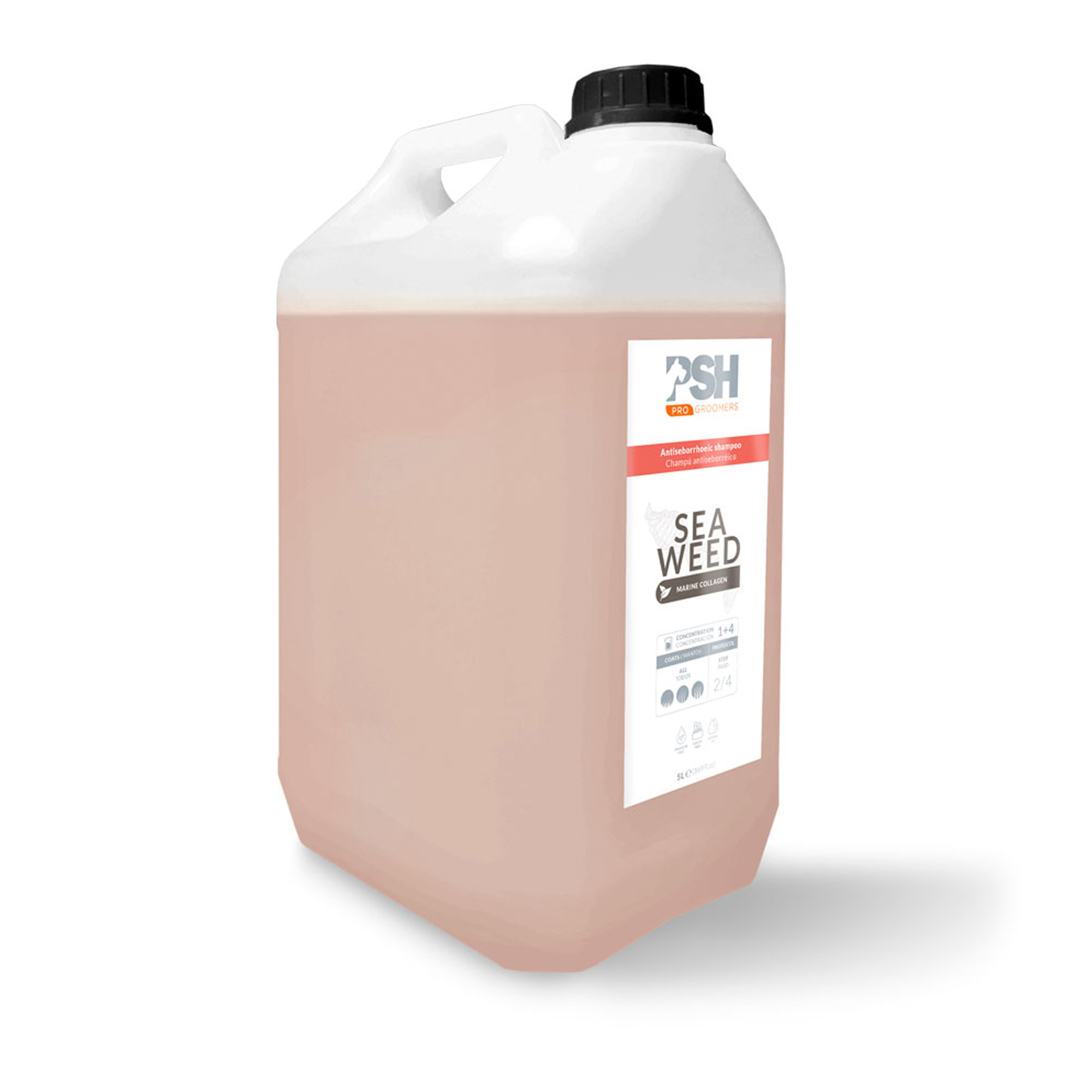 Formato de presentación: frasco de 1L. El nuevo Champú Antiseborréico a las algas marinas de PSH consigue que el pelo con exceso de grasa de su mascota recupere su textura, suavidad y brillo natural, realzando e intensificando su color natural y facilitando su peinado. Está especialmente indicado para razas de pelo denso con subpelo y que presenten exceso de grasa o seborrea, como por ejemplo el Chow-Chow. Su Ph ajustado, su muy alta concentración y la calidad de sus componentes, tensioactivos, acondicionadores, principios activos de origen marino y vegetal, y espesantes, todos de origen natural, hacen de este champú la herramienta perfecta para la salud del pelo de su mascota. Elimina el exceso de grasa en el manto y regula la secreción de las glándulas sebáceas, favoreciendo el riego sanguíneo en el bulbo piloso. Su suave perfume hipoalergénico frutal elimina los malos olores, dándole un agradable aroma al manto de su mascota.