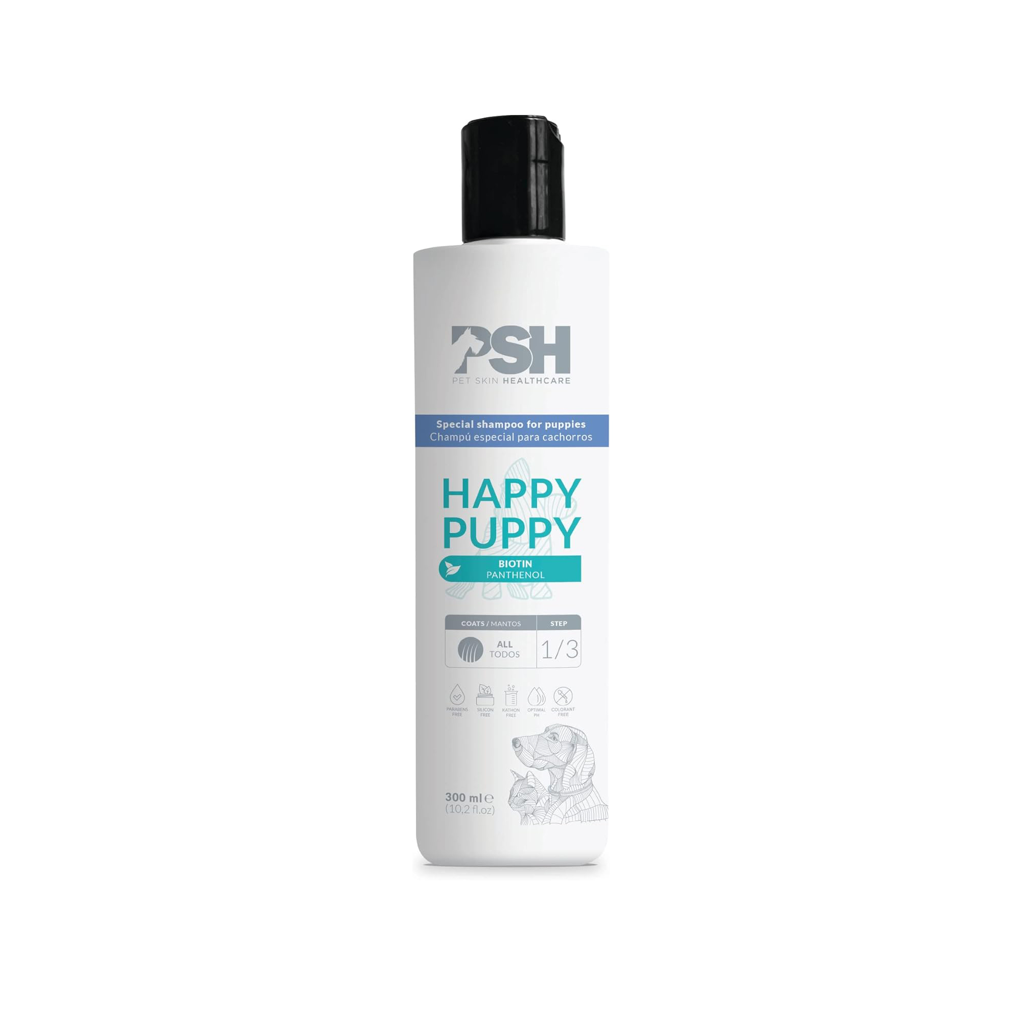 Esta gama la forman el Champú, Acondicionador y la Loción Happy Puppy en los formatos de 300mL. Especialmente formulado para aportar una limpieza delicada y nutritiva.