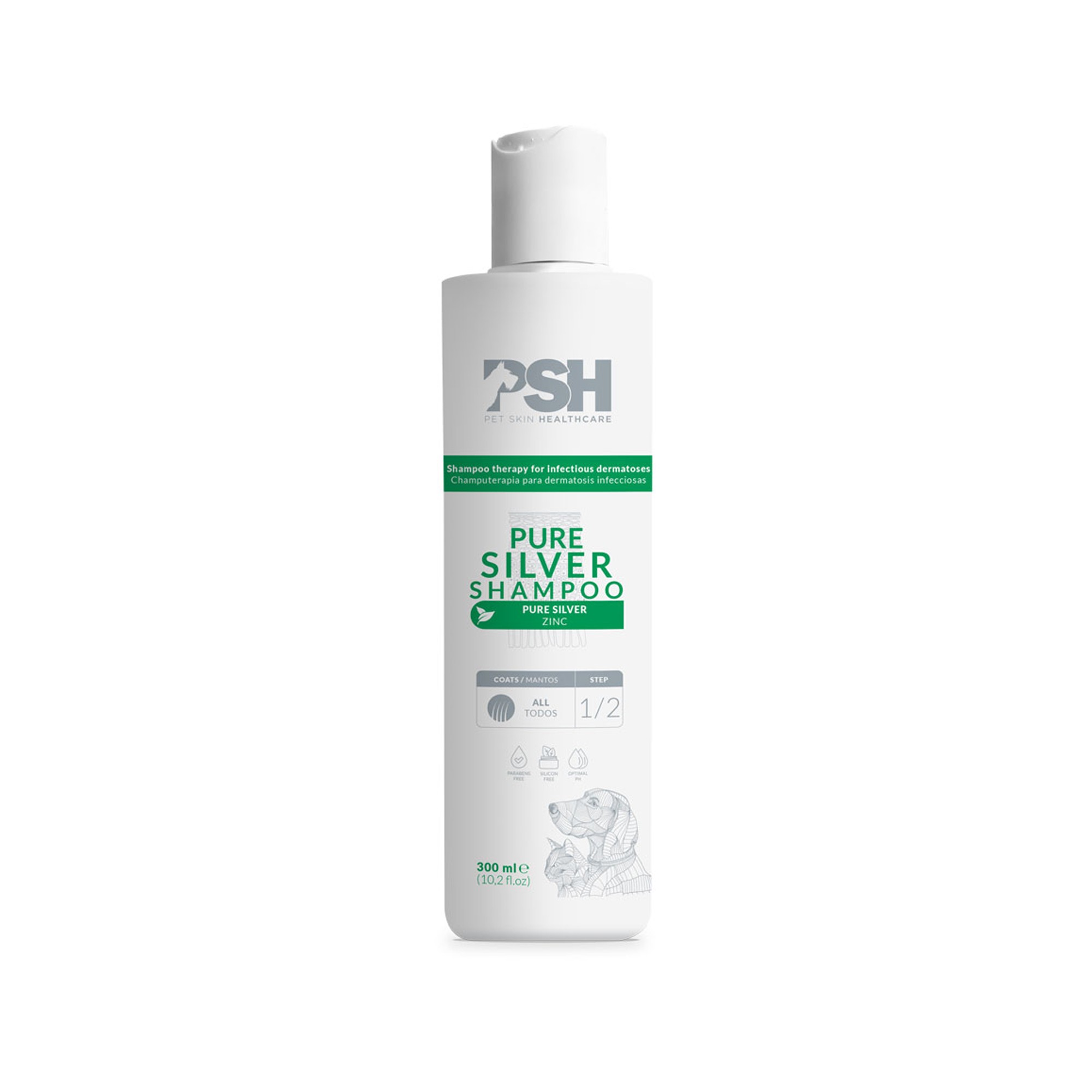 La gama Pure Silver está especialmente indicada para dermatosis infecciosas, fúngicas o parasitarias (Staphylococcus spp, Malassezia spp, Sarcoptes, Demodex) que presenten lesiones como: eritema, pápulas, pústulas y/o placas.