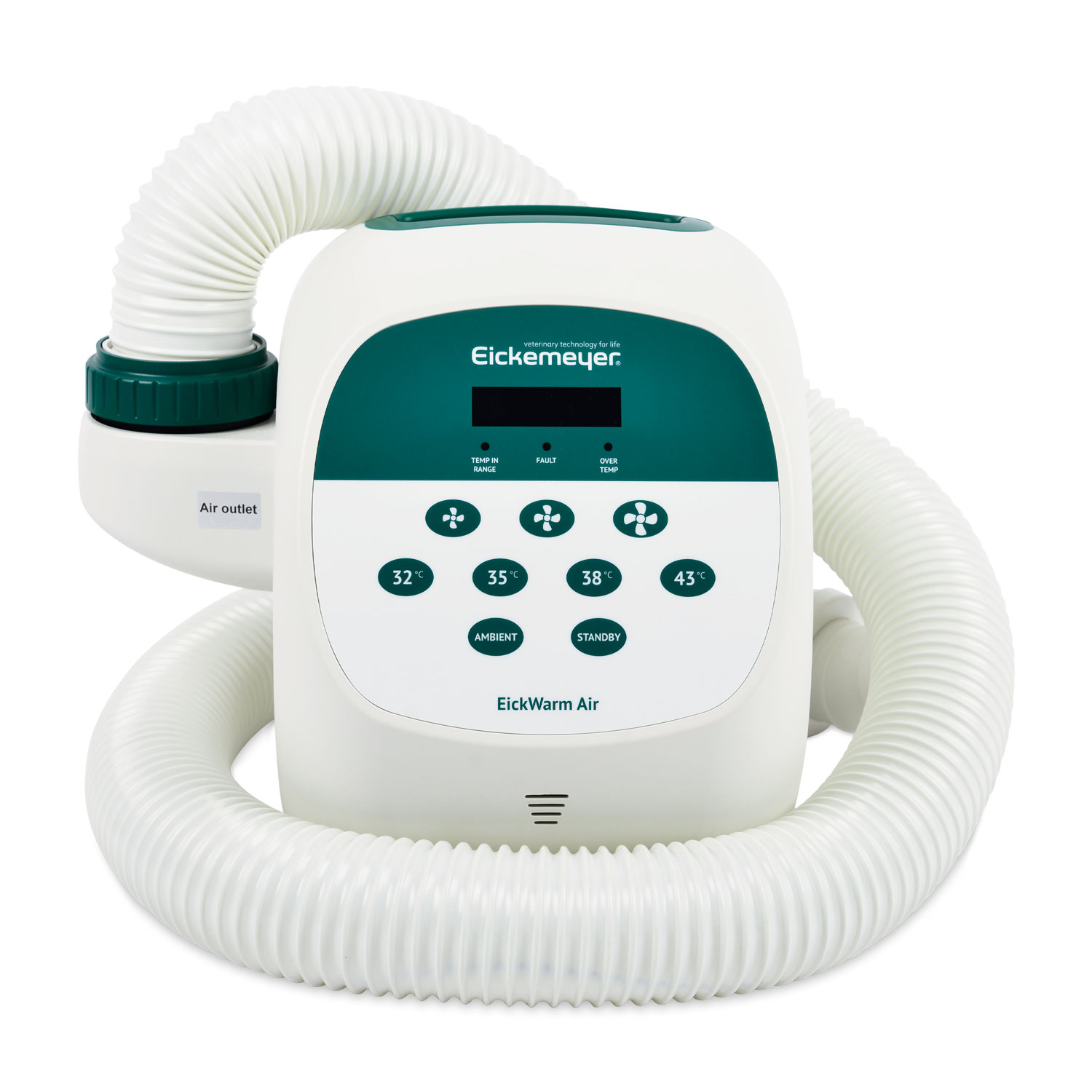 La hipotermia intraoperatoria es una de las complicaciones anestésicas más comunes en la medicina de pequeños animales. Una buena gestión térmica perioperatoria juega un papel crucial en la reducción de este riesgo. El dispositivo de aire caliente EickWarm Air para animales pequeños es extremadamente potente y distribuye el aire caliente de forma especialmente uniforme y silenciosa a través de las esteras térmicas disponibles opcionalmente. Esto protege al paciente de forma segura y fiable contra el enfriamiento.