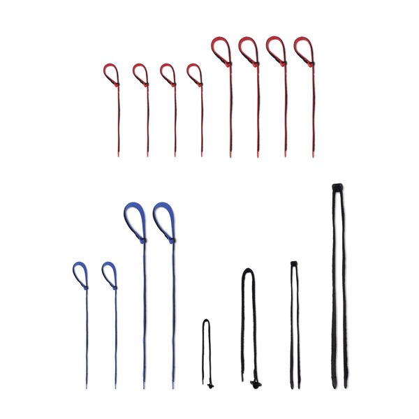 - Kit de 5 tamaños, incluyendo fijación manual, mural y cintas de náilon con código de colores