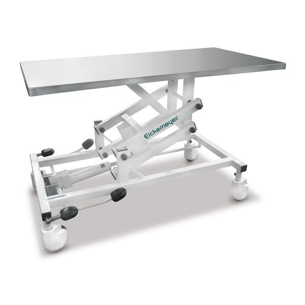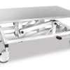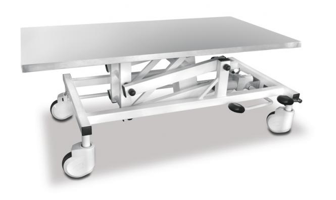 El mecanismo de elevación hidráulica ayuda a proteger la espalda. El marco resistente garantiza la estabilidad en toda su área. Las 4 ruedas pueden ser bloqueadas simultáneamente mediante el interruptor de pie.