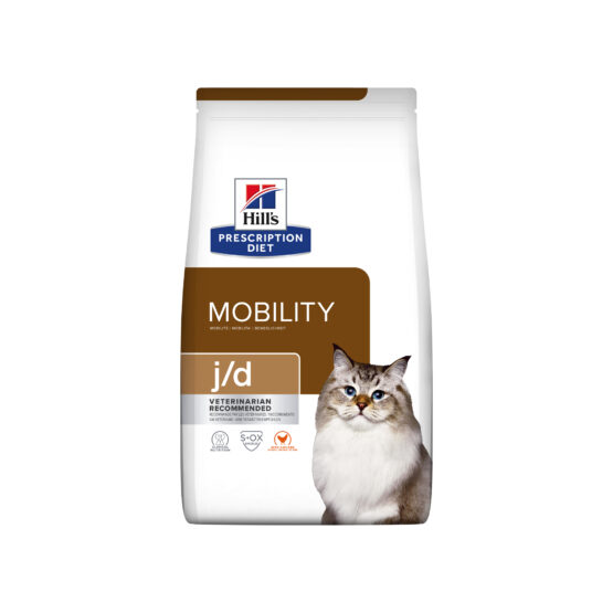 Hill’s™ Prescription Diet™ Feline j/d™ ha probado clínicamente que mejora la movilidad en 28 días con un equilibrado aporte de nutrientes, DHA (un ácido graso omega 3 especial) y ácidos grasos omega 3 totales.