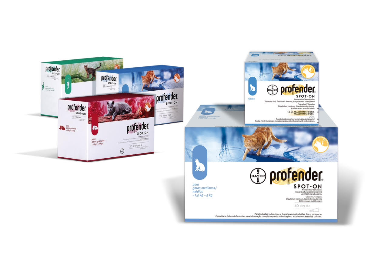 Profender® para gatos medianos 2,5 – 5 kg. Envase de 2, 20 y 40 pipetas.