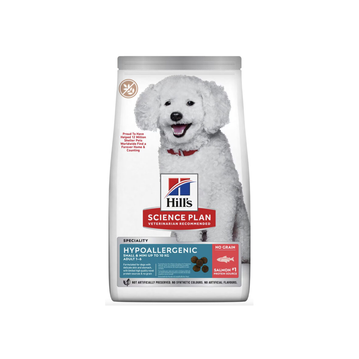 Hill’s Science Plan Hypoallergenic alimento para perros adultos de razas pequeñas y mini con salmón es una receta suave formulada con fuentes limitadas de proteína novedosa de alta calidad y sin cereales, diseñada para satisfacer las necesidades de los perros con sensibilidades.