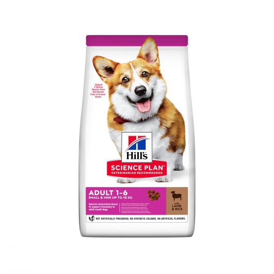 Hill’s™ Science Plan™ SMALL & MINI ALIMENTO PARA PERROS ADULTOS con CORDERO y ARROZ (cordero 9%, arroz 22%) es un alimento completo para perros pequeños de 1 a 6 años de edad.