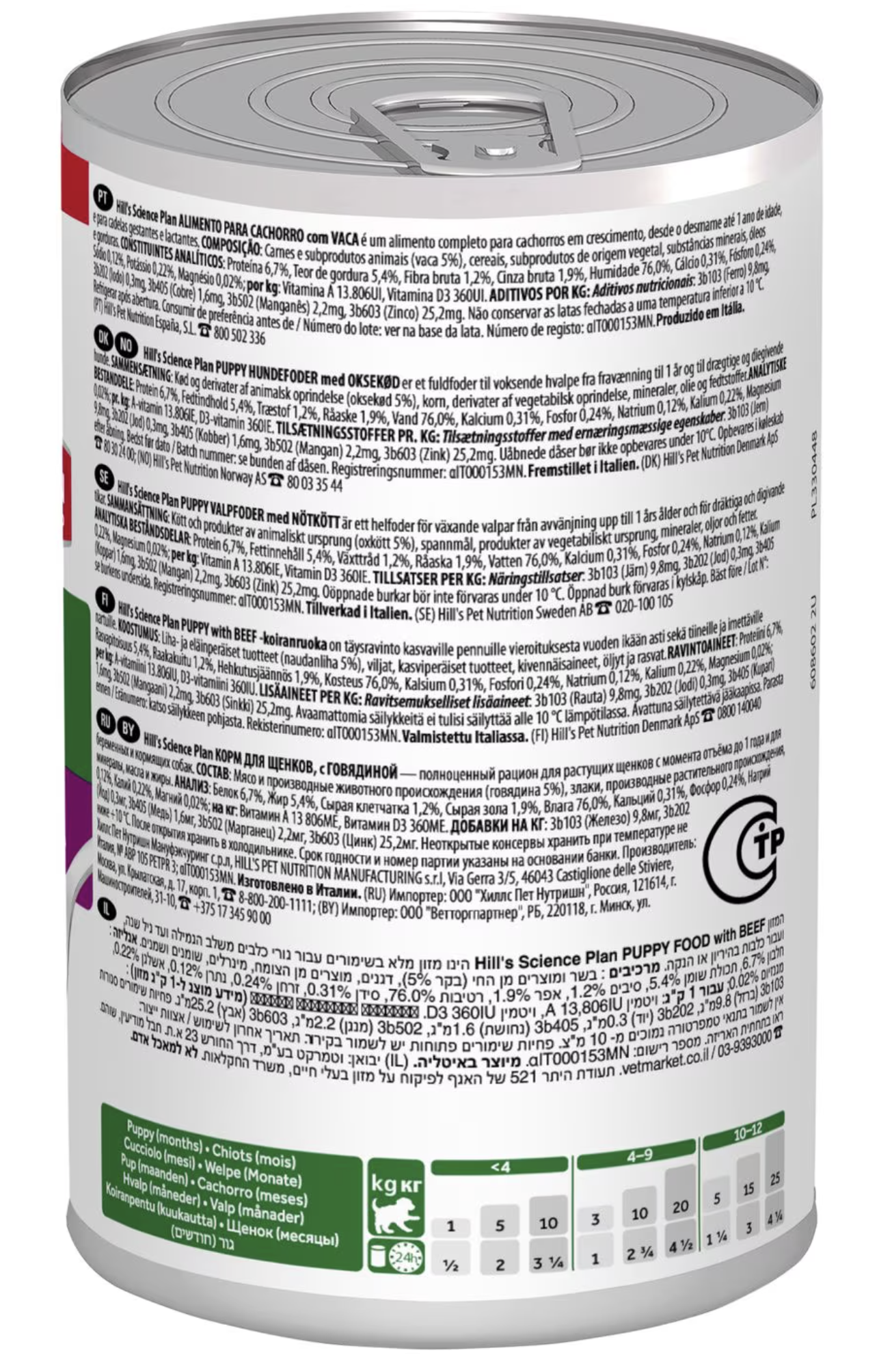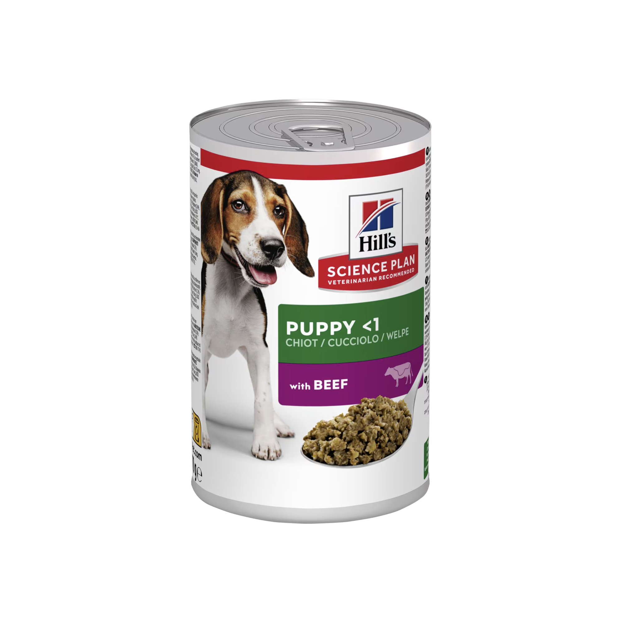 A tu cachorro le encantará el sabor de Hill’s Science Plan alimento húmedo para cachorros con vacuno.