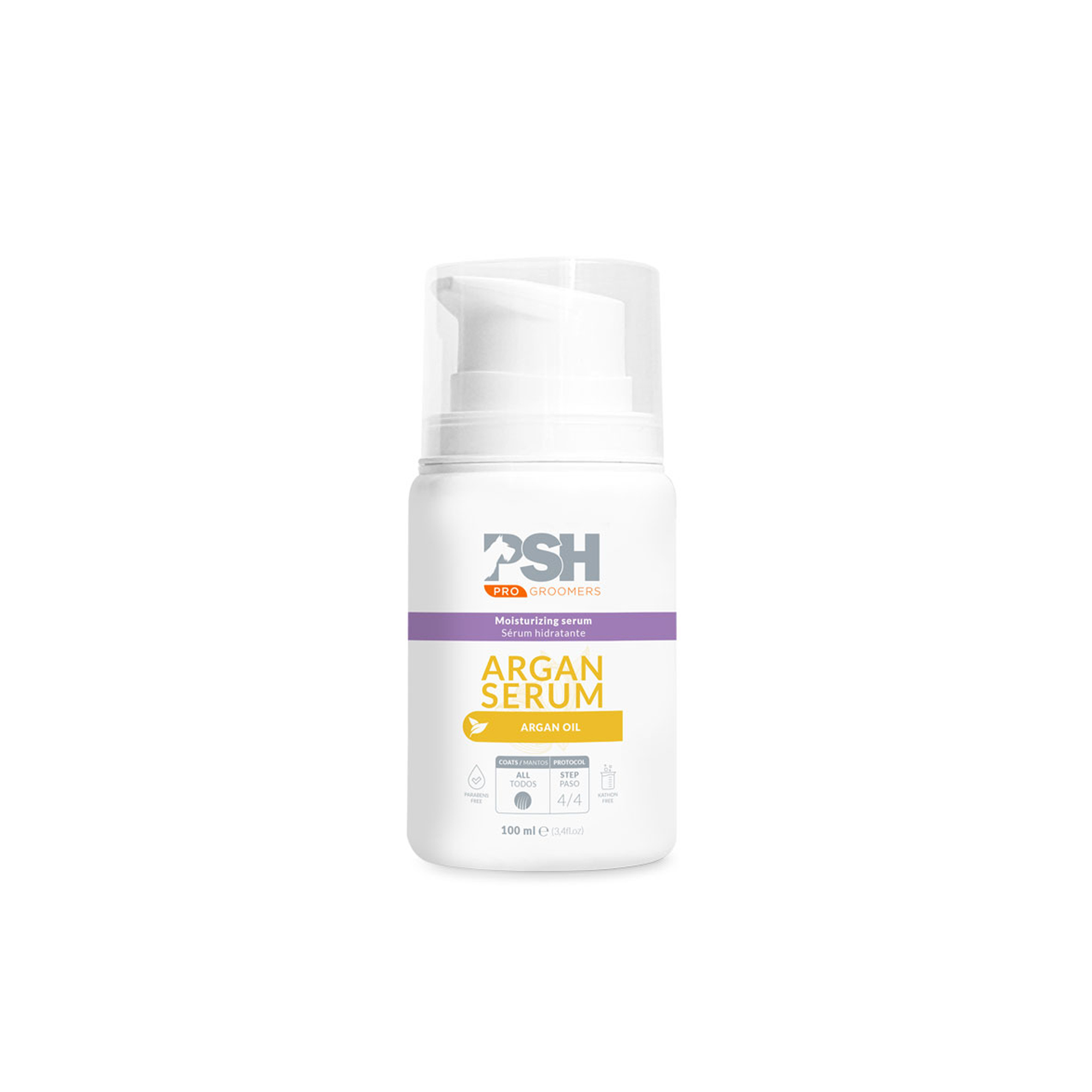 FR. 125ML El Aceite de Argán proviene de los frutos de un árbol llamado Arganis Spinosa (El Árbol de la vida), originario de Marruecos. El Aceite de Argán presenta un contenido excepcional de ácidos grasos esenciales, entre los cuales se encuentra el Ácido Linoléico (Ácido Omega 6) El Serum al Aceite de Argán de PSH, Oro líquido para el manto y la piel de su mascota, se funde con el peo hidratándolo y favoreciendo su regeneración desde las raíces hasta las puntas. Está especialmente formulado para regenerar y nutrir el pelo seco, desvitalizado. Conseguiremos recuperar e hidratar mantos secos, pobres, desvitalizados, quebradizos y sin elasticidad ni brillo. Su acción reparadora e hidratante lleva una acción anti encrespamiento, favoreciendo un alisado de larga duración, impidiendo que el pelo se encrespe, ondule o coja excesivo volumen, impidiendo una caída natural y lisa. La aplicación sobre la piel en zonas peladas de pelo, consigue eliminar durezas y enrojecimientos, favoreciendo la recuperación capilar de la zona. MODO DE EMPLEO: Se utiliza en cabello SECO y LIMPIO. Depositar una pequeña cantidad de Serum en la yema de los dedos. Aplicar directamente sobre el cabello, de raíz a puntas a modo de peine. Masajear las puntas hasta su completa absorción. NO ACLARAR. Peinar de la forma habitual.