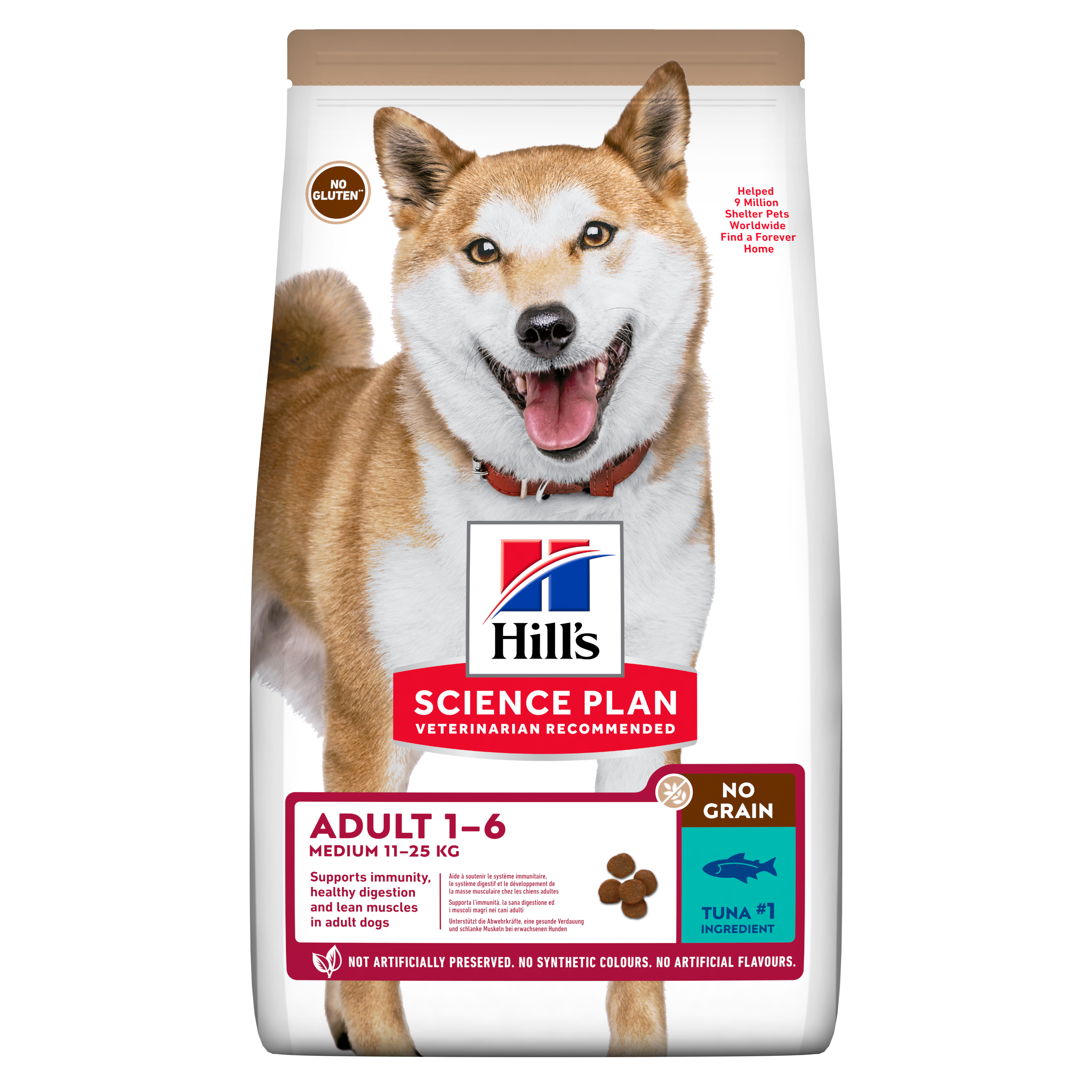 El alimento para perros adultos de razas medianas Hill’s SCIENCE PLAN NO GRAIN con atún está especialmente formulado para satisfacer las necesidades energéticas de los perros durante la mayor parte de su vida. Elaborado con ingredientes de alta calidad fácilmente digestibles.