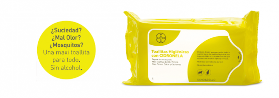 Toallitas higiénicas con cidronela para perros y gatos.